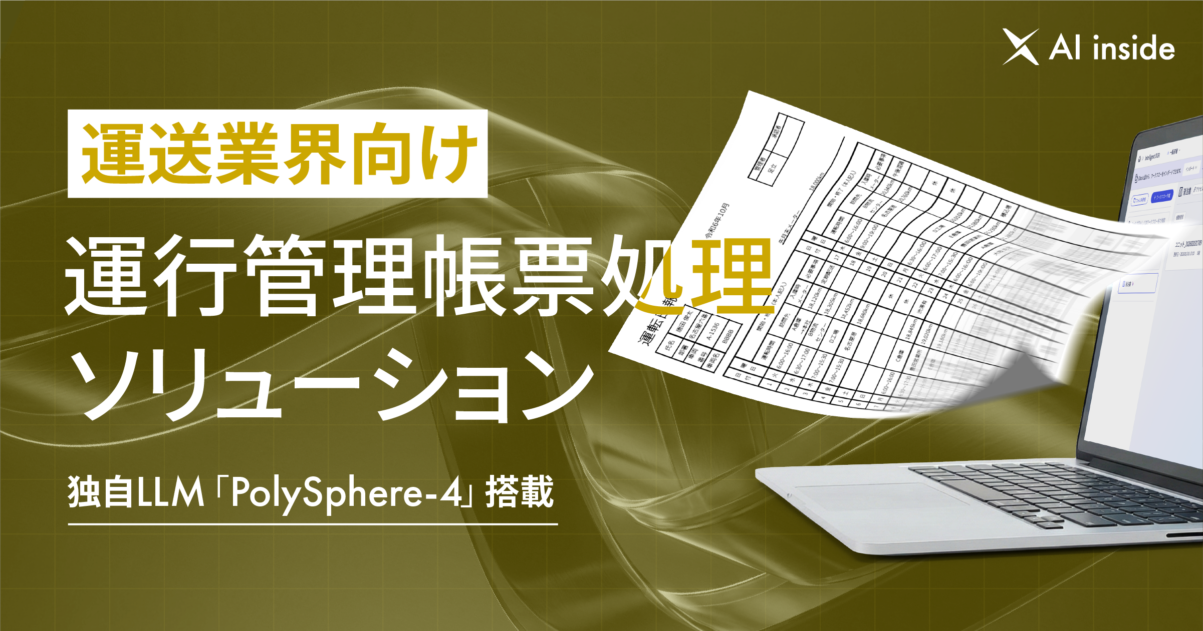 AI inside 株式会社(代表取締役社長CEO:渡久地 択、本社:東京都港区、以下「AI inside」)は、運送業界における運転日報および車両点検記録などの運行管理帳票を高精度にデータ化するソリューション(以下「本サービス」)を提供開始したことをお知らせいたします。