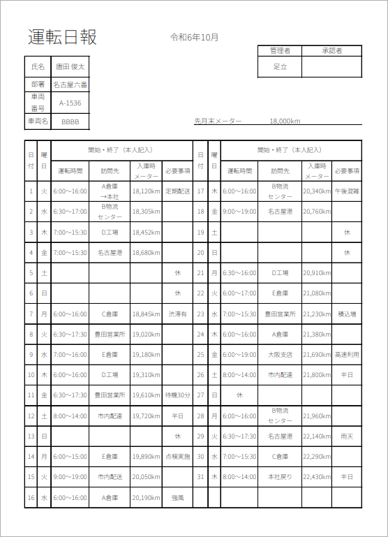 運送業界では、ドライバーが日々記入する運転日報や車両点検記録を営業所で回収し、Excelや基幹システムへ転記・登録する業務が発生しています。 これらの帳票は、左右に分かれた特殊な表構造や歯抜け形式を含む複雑なレイアウトで構成されていることが多く、さらに◯・△などの記号や手書き記入、略記も含まれるため、従来のAI-OCRでは安定した読み取りが難しく、人手による入力を前提とした運用が続いていました。