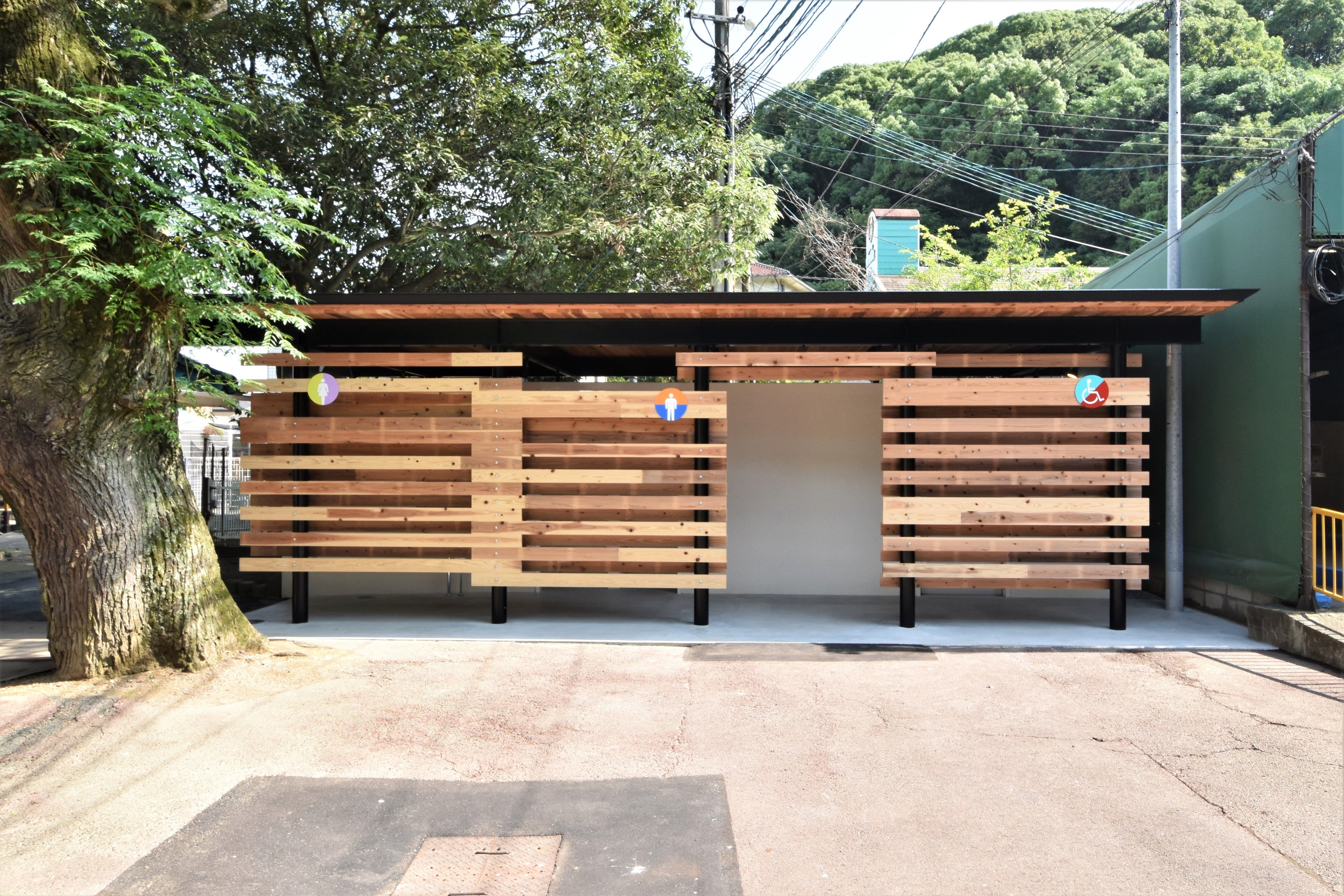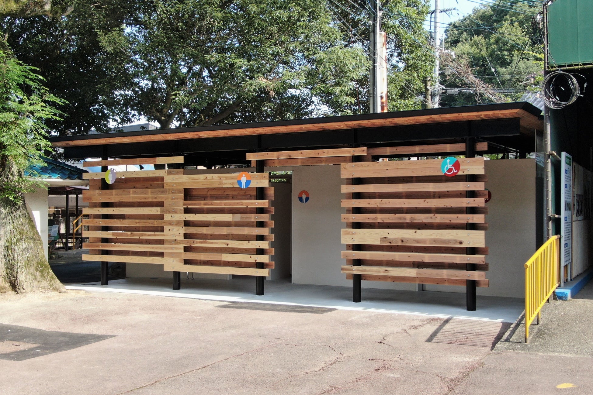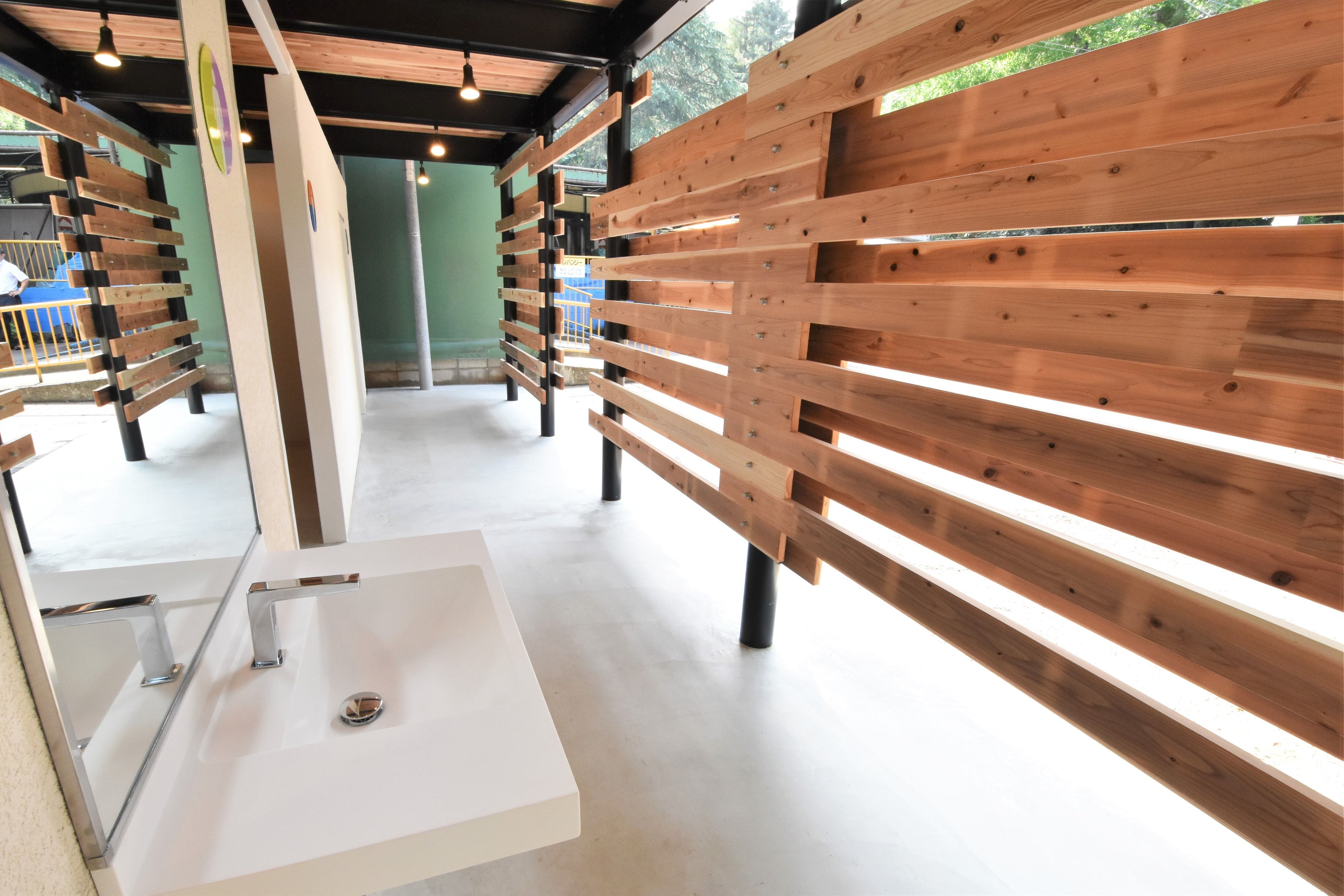ライフデザイン・カバヤは、池田動物園のトイレの改修工事を行い、CLTを用いたトイレが完成しました。