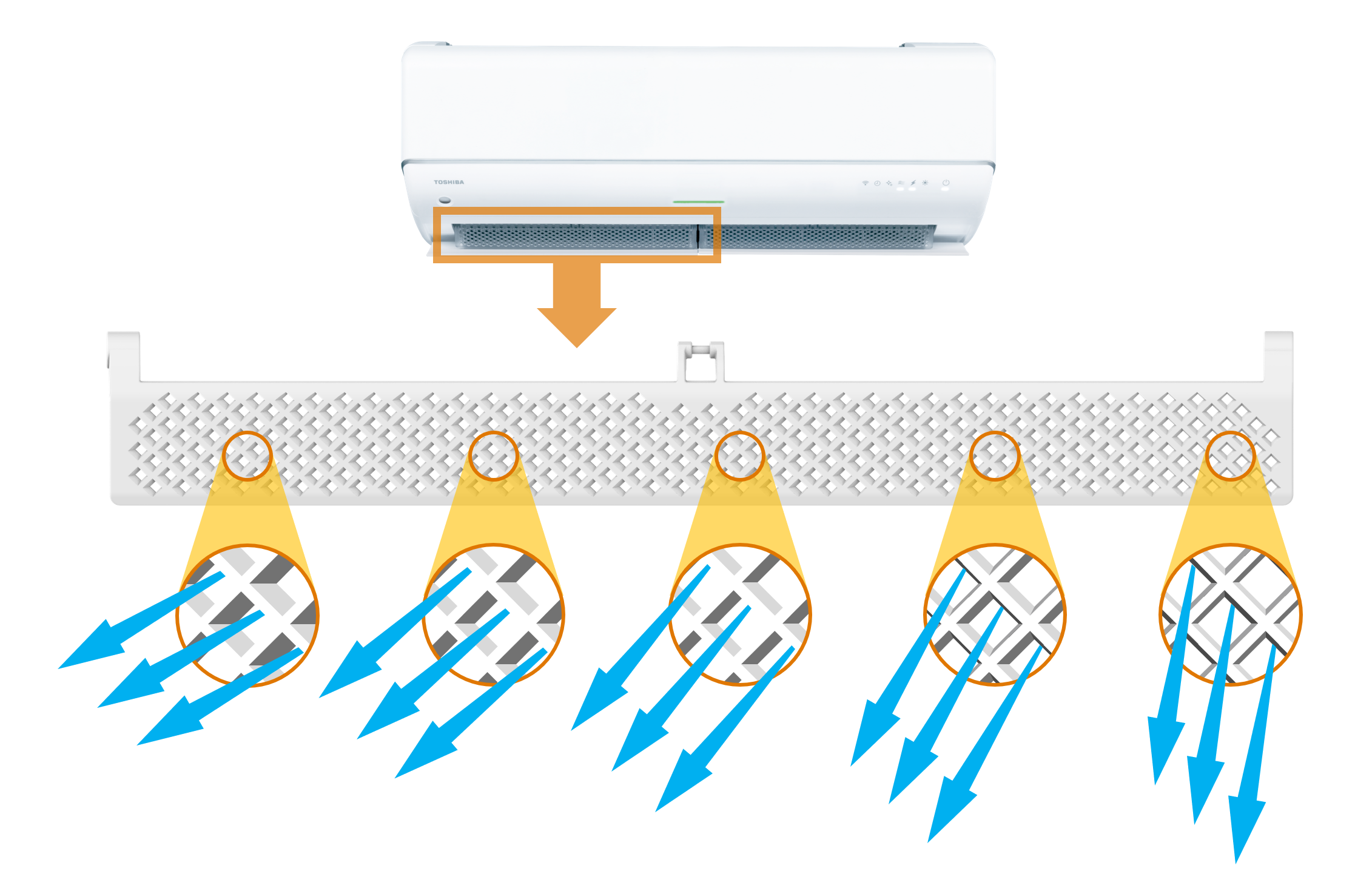 「大清快」シリーズのフラッグシップモデルである「V-DRシリーズ」では、当社の特許技術である「無風感空調」が進化しました。独自の「無風感ルーバー」を改良することで風速を従来比約30%低減[※1]、風当たりを和らげる効果がさらに向上しました。