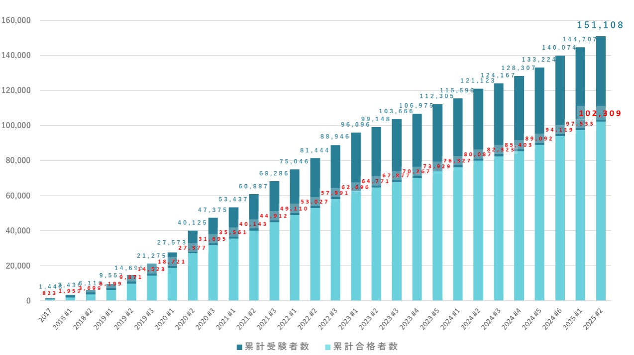 これにより、G検定の累計受験者数は151,108名、累計合格者数は102,309名になりました。