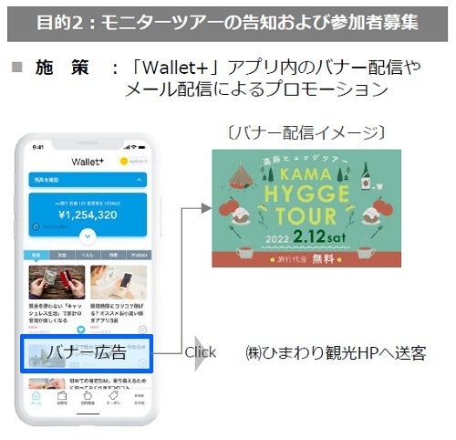 ツアー造成にあたっては、 FFG傘下のiBankマーケティング株式会社(代表取締役社長 明石 俊彦、以下「iBank社」)が運営する「Wallet+」を活用し、今後の事業化を見据えたアンケート実施や、集客に繋げるバナー広告・メール配信によるプロモーションを行います。