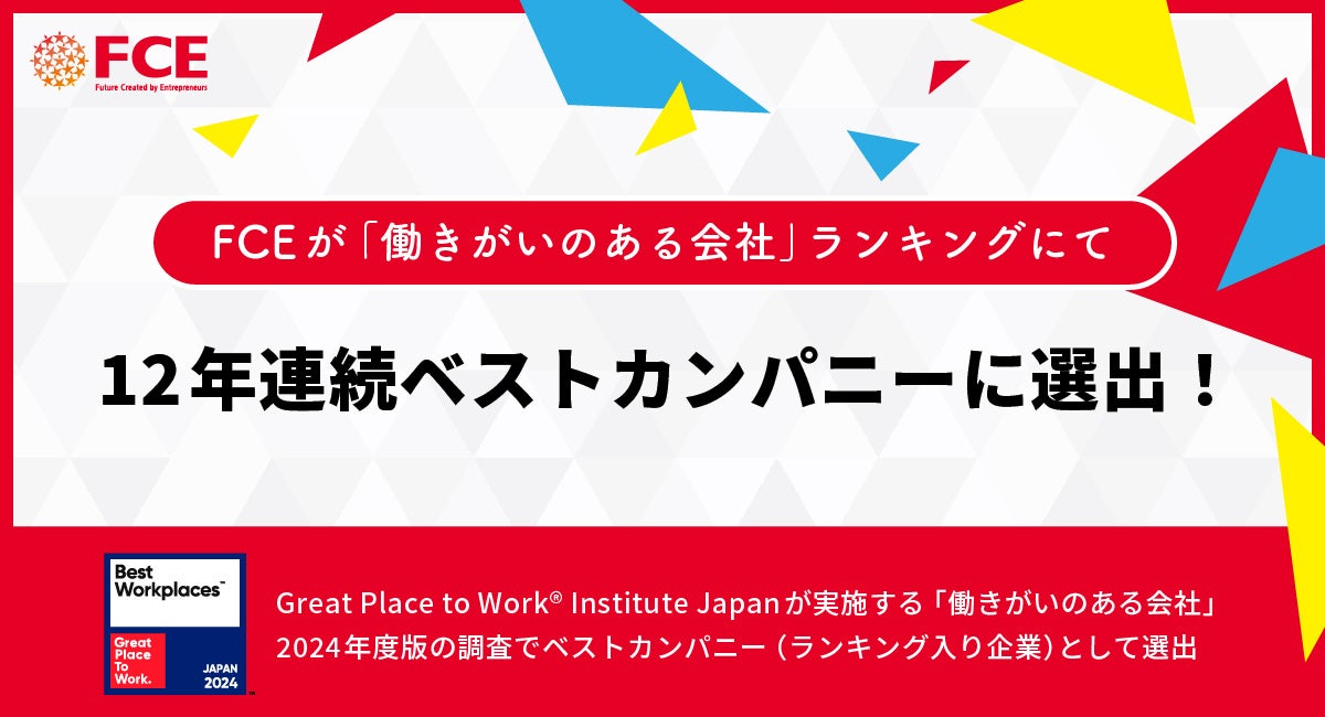 FCEが「働きがいのある会社」ランキングにて12年連続ベストカンパニーに選出!