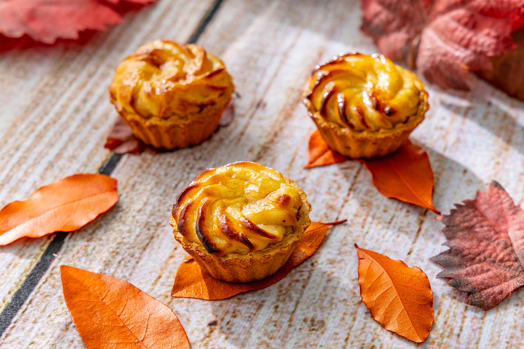 アーモンドクリームを入れて焼き上げたサクサクタルトに、ホイップクリームと熊本県産阿蘇栗を使用したマロンクリームを絞りました。栗の甘味とタルトの香ばしさが合わさった王道のスイーツ。