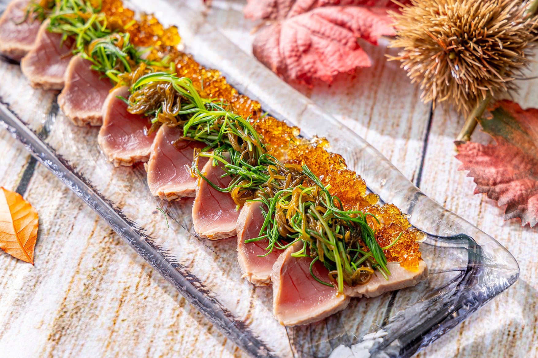 名産地高知県産の新鮮な鰹のタタキに、沖縄県産もずくとおかひじきをトッピングし、食感と彩をプラス。夏の酷暑で疲れた体を労わる、栄養たっぷりの一品です。