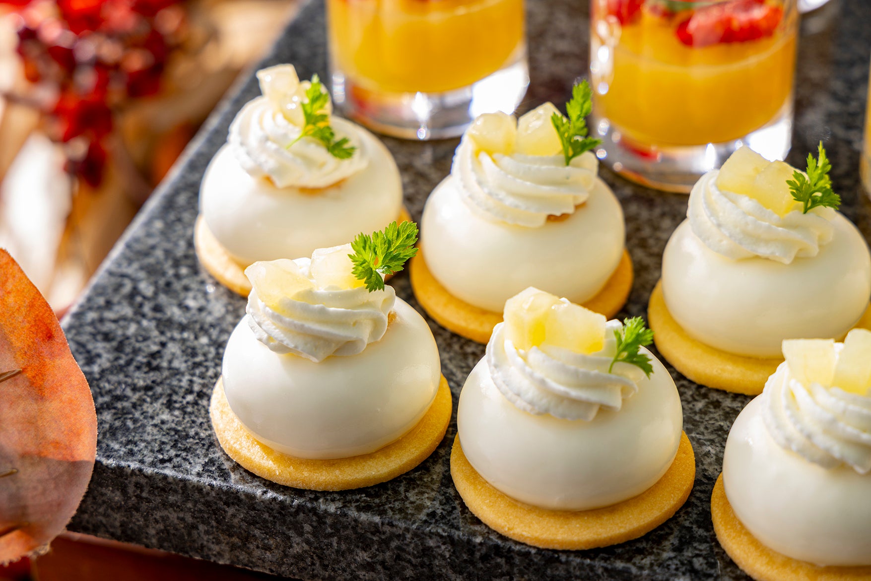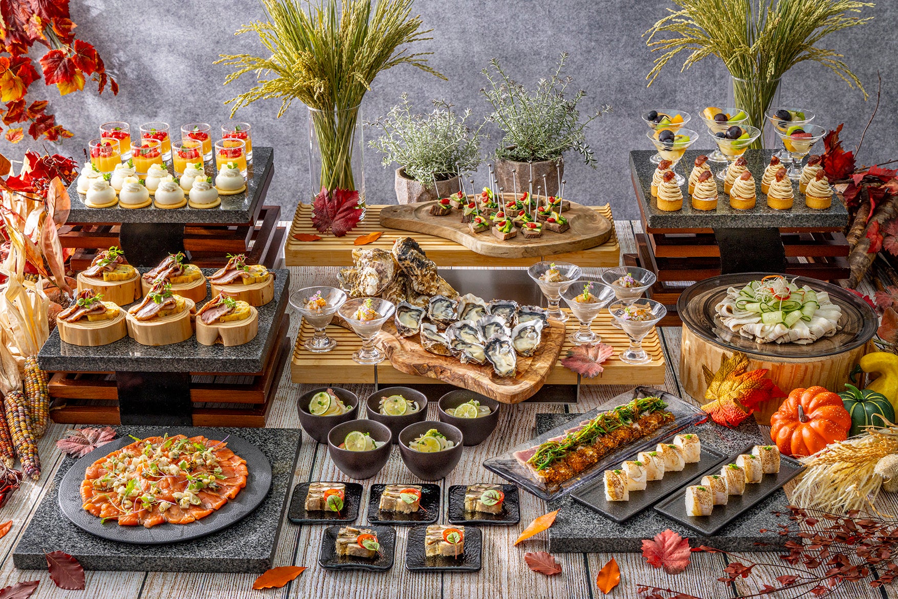 空が高く景色が色づく秋は、日本の豊かな自然が育てた海、山、陸の幸が食卓を彩ります。「シェフズ・トリート・ランチビュッフェ~秋の収穫祭~」では、日本一周をコンセプトに、秋の代名詞である秋刀魚や栗を始めとする、全国から仕入れた旬の味覚をお届けします。のどぐろ棒寿司や鰹のタタキなど素材の美味しさが際立つシンプルな料理から、秋刀魚と茄子、レバーと白エビといった互いの味わいを引き立たせる新鮮な組み合わせまで、実りの秋を堪能するラインアップをご用意。さらに、オイスターステーションでは、質の高いシーフードを誇るニュージーランド産の生牡蠣をご提供します。クリーミーで濃厚な海の幸を、お好みの調味料とともにご堪能いただけます。