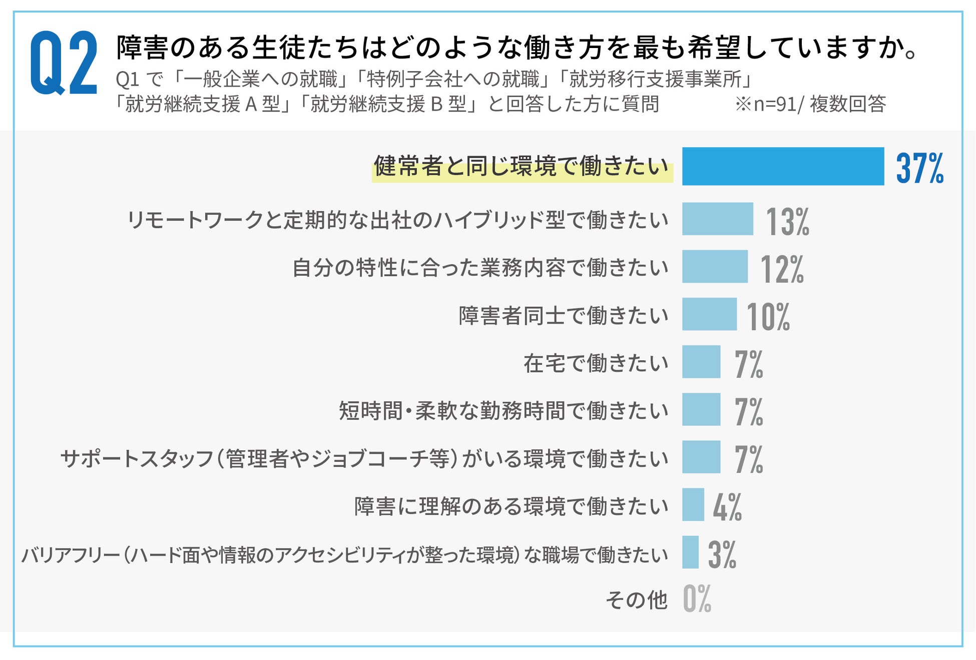 2…希望する働き方は「健常者と同じ環境で働きたい」が最多
