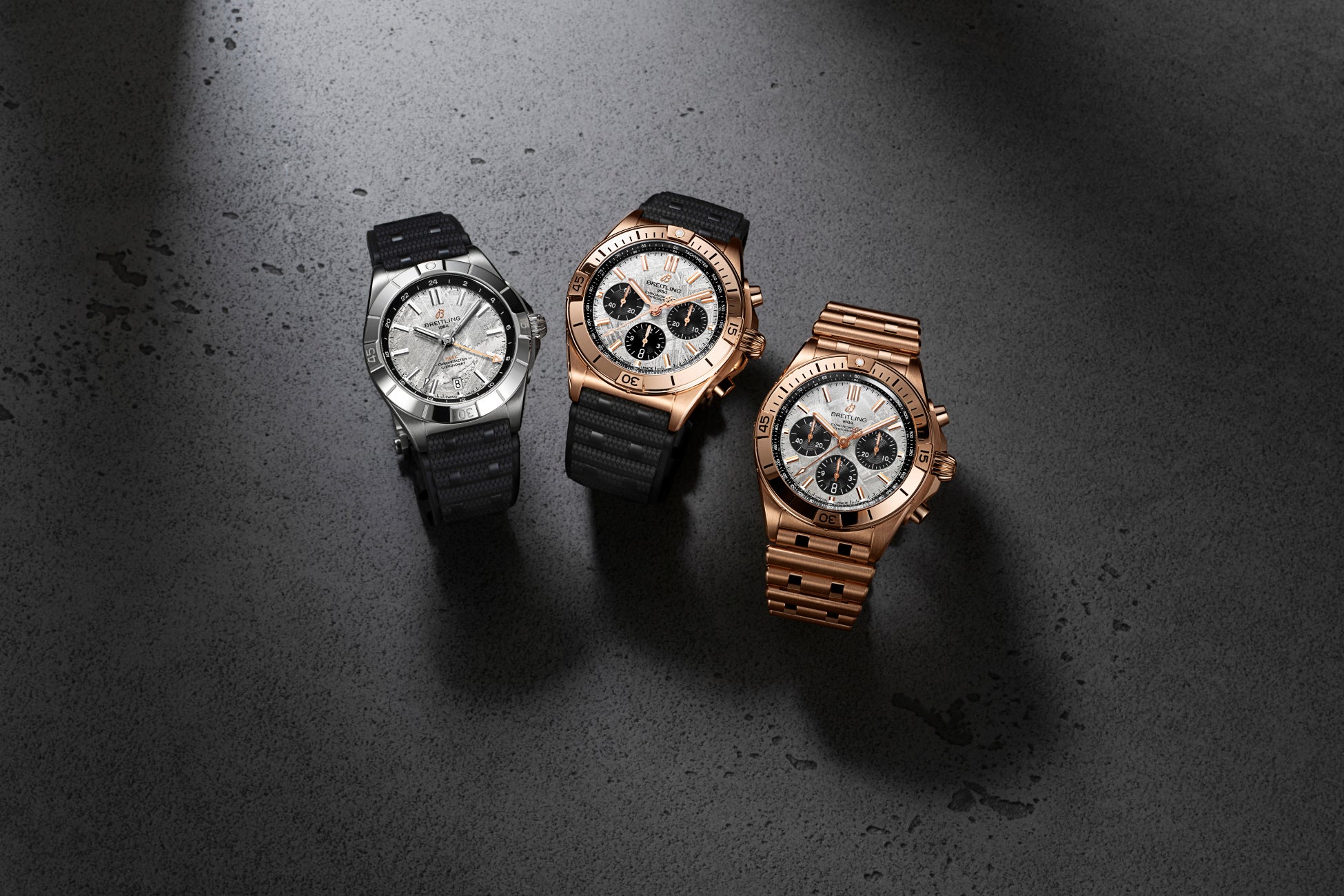 このブライトリングの最新作は、眩いほどに優れた素材とスターアスリートの両方を称えるものです。プロサッカー選手のアーリング・ハーランドと共同デザインしたこのコレクションには、ステンレススチールとプラチナのクロノマット オートマチック GMT 40(500本限定)と、18Kレッドゴールドのクロノマット B01 42(250本限定)の2つの限定モデルが登場します。どちらのモデルもメテオライト文字盤を採用しており、同じ時計は2つとありません。