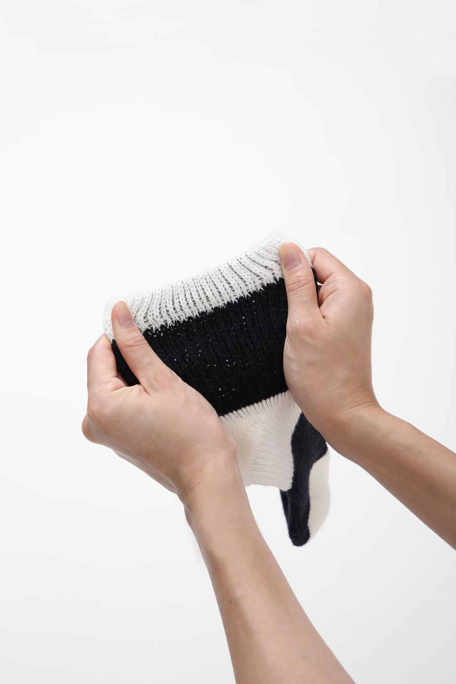 就寝時の着用に特化した編み方で、暖かさと通気性を両立