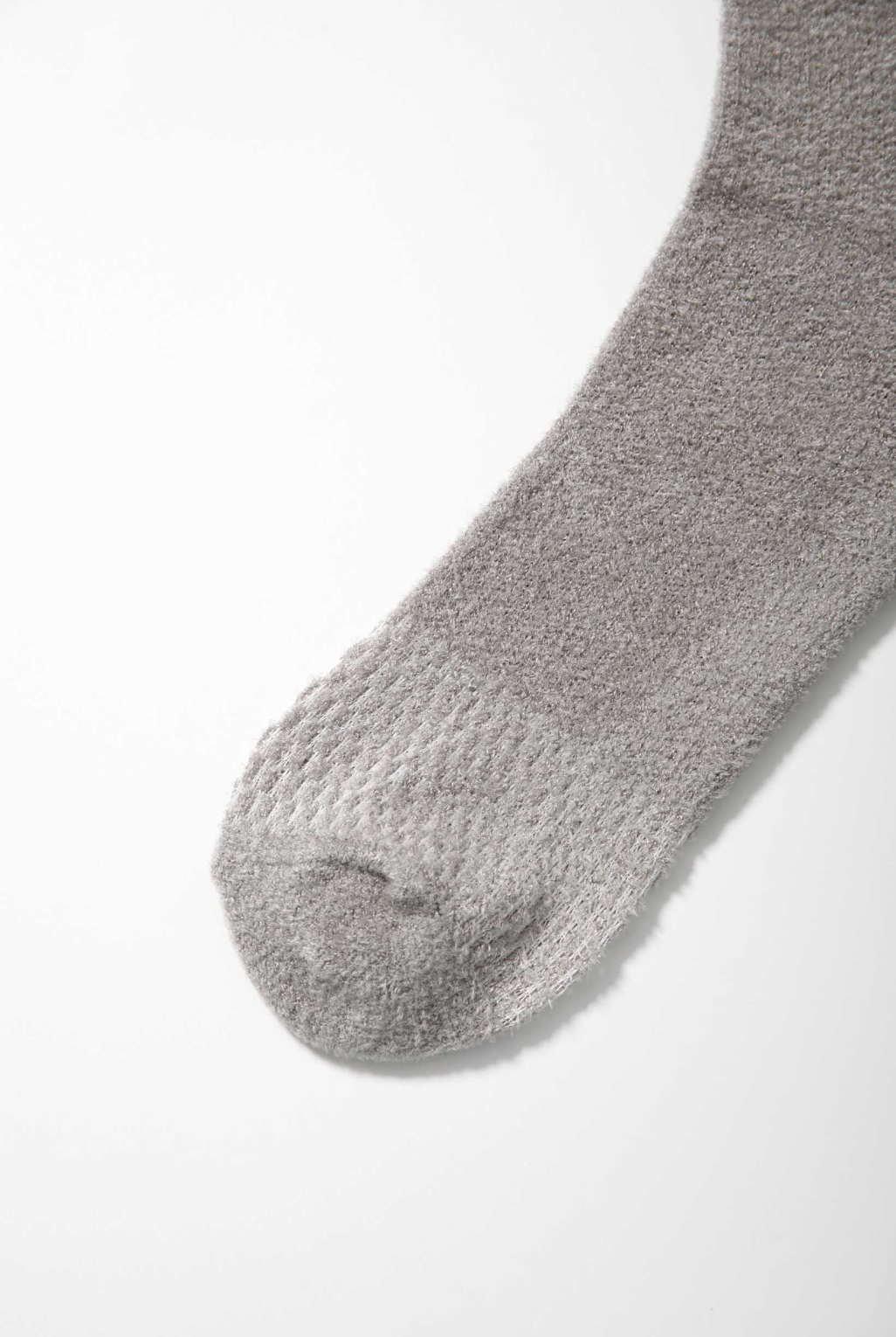 まず、従来のモデルよりもフラットな糸に変更したことで、肌あたりの良さが向上いたしました。編み地においては、ふくらはぎには立体感のある編み地を、つま先と踵にはタオル地のようなパイル編みを採用。これにより、ふくらはぎは適度な締め付けと伸縮性により履き心地がよくなり、つま先と踵は肌触りや高い吸水性が期待できます。