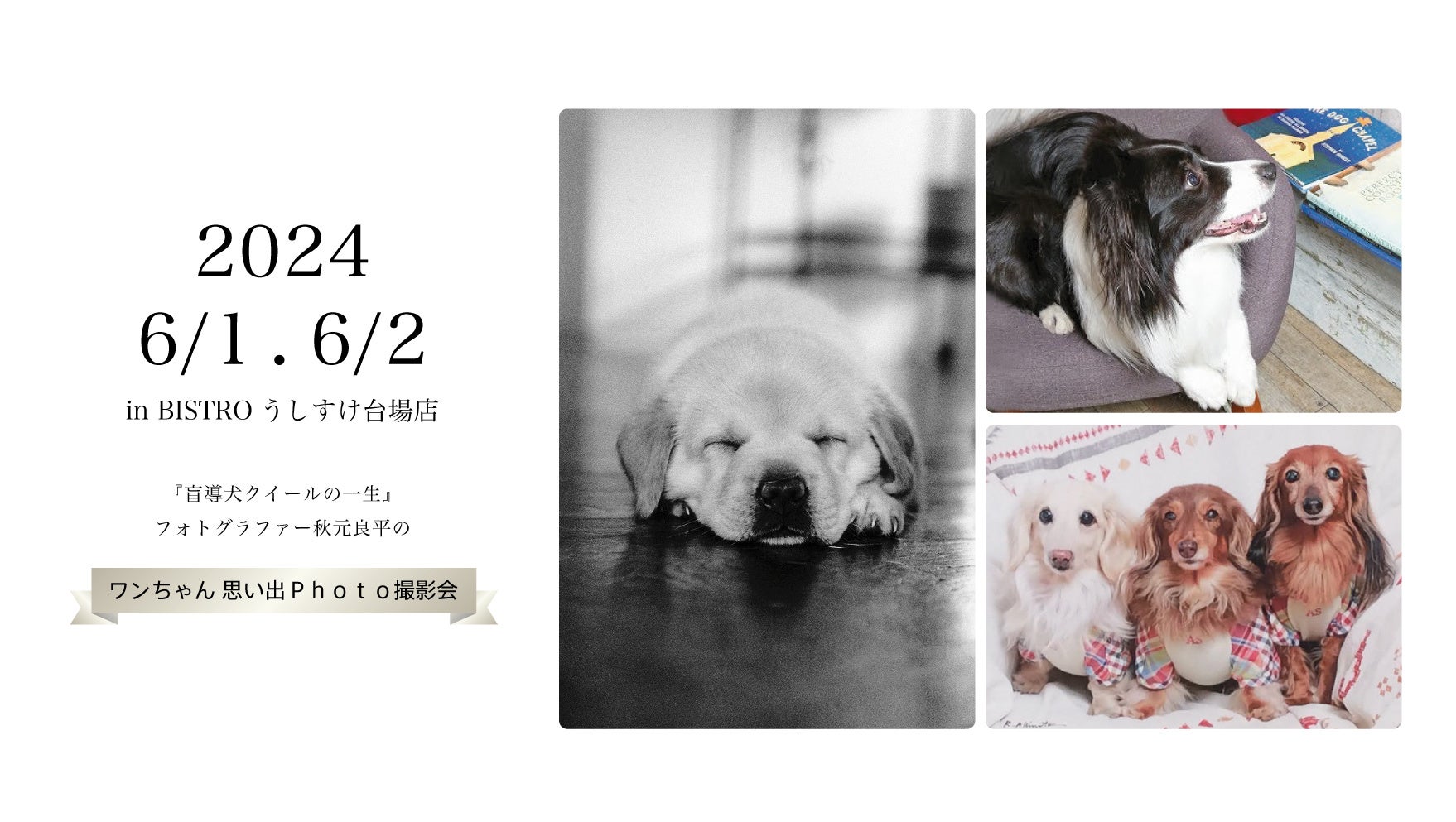 本イベント『ワンちゃん思い出Photo撮影会』は、ペット同飯™️可レストラン「うしすけ」と「盲導犬クイールの一生」を撮影したフォトグラファー秋元良平氏とのコラボ企画で、3回目の開催となる企画です。