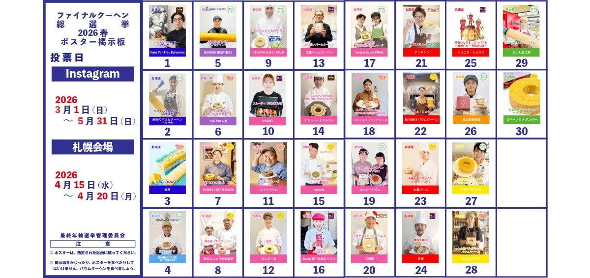 Instagram投票も実施されるため、開催期間中は日本全国どこからでも投票が可能です。みなさまの清き1票をご当地ブランドが心待ちにしています。あなたの推しのご当地バウムクーヘンに投票して、推しバウムを応援しましょう!