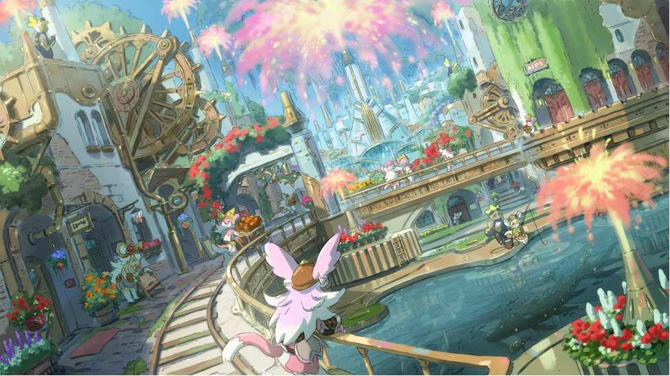 モフモフのケモノ種族たちが住まう街で、蒸気機関や歯車をイメージした街並みが広がります。