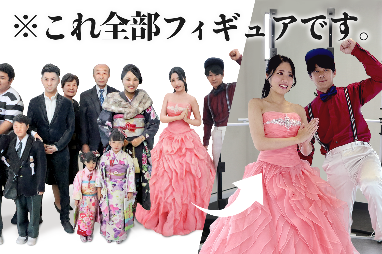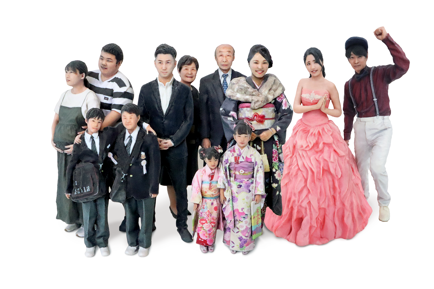 写真スタジオで撮影するくらいの価格で立体のフィギュアを製作できる為、フィギュア化をして立体で残すブームがきています。
