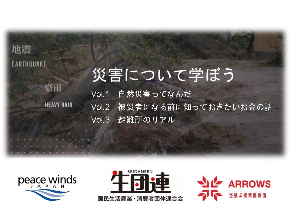 国民生活産業・消費者団体連合会(生団連)とピースウィンズ・ジャパンは、災害時に私たちが事前に知っておきたい災害について学べる動画を公開しています。