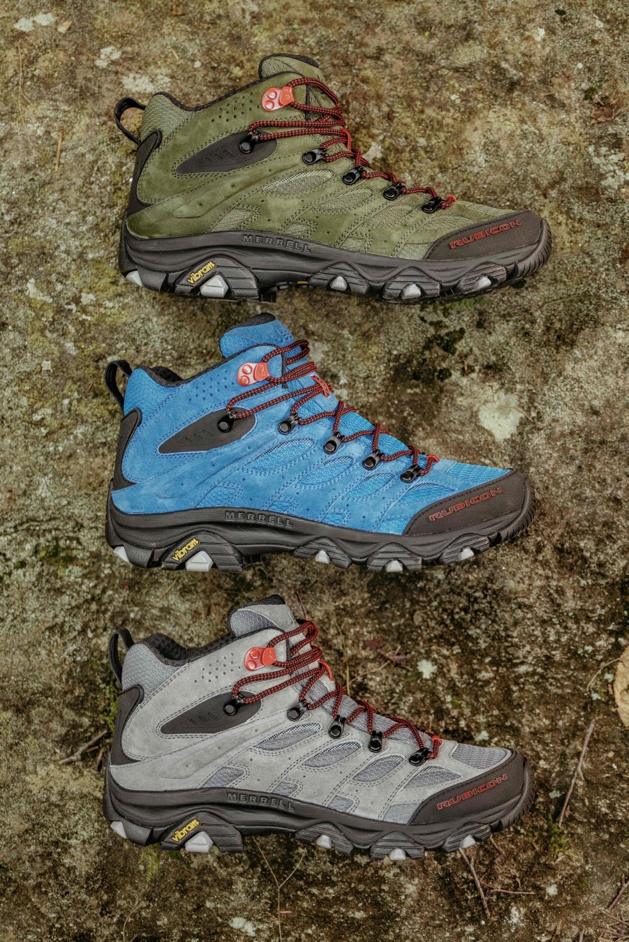 この度のコラボレーションアイテムは、力強く象徴的な”HYDRO BLUE”カラーを筆頭に、ソリッドな”STING GREY”、アウトドアコアな”SARGE GREEN”の3色での展開となり、爪先を衝撃から守るラバートゥキャップに”RUBICON”のロゴを配したスペシャルモデルとなります。