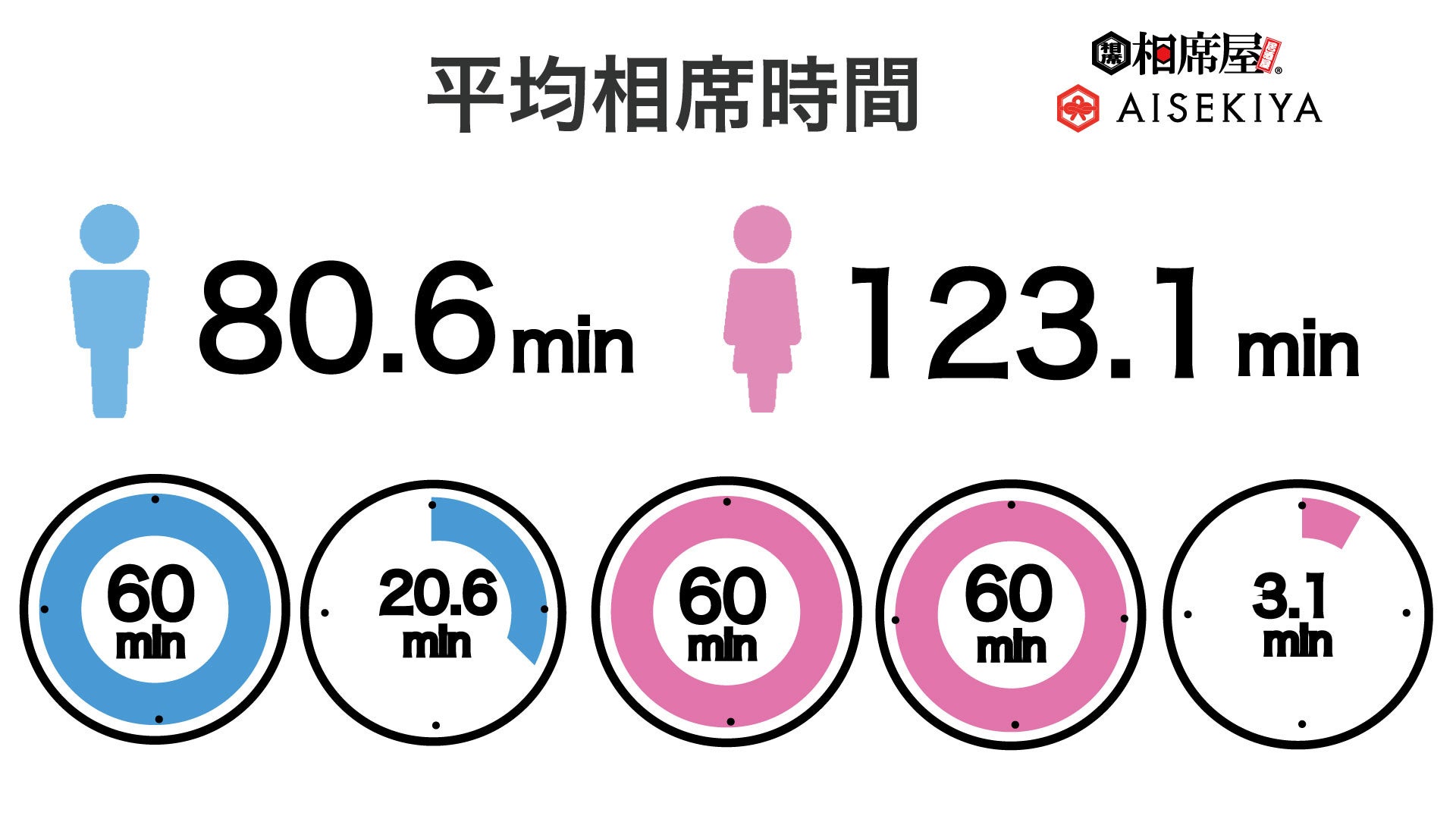 2024年1月の相席屋平均相席時間は男性80.6分、女性は123.1分となりました。