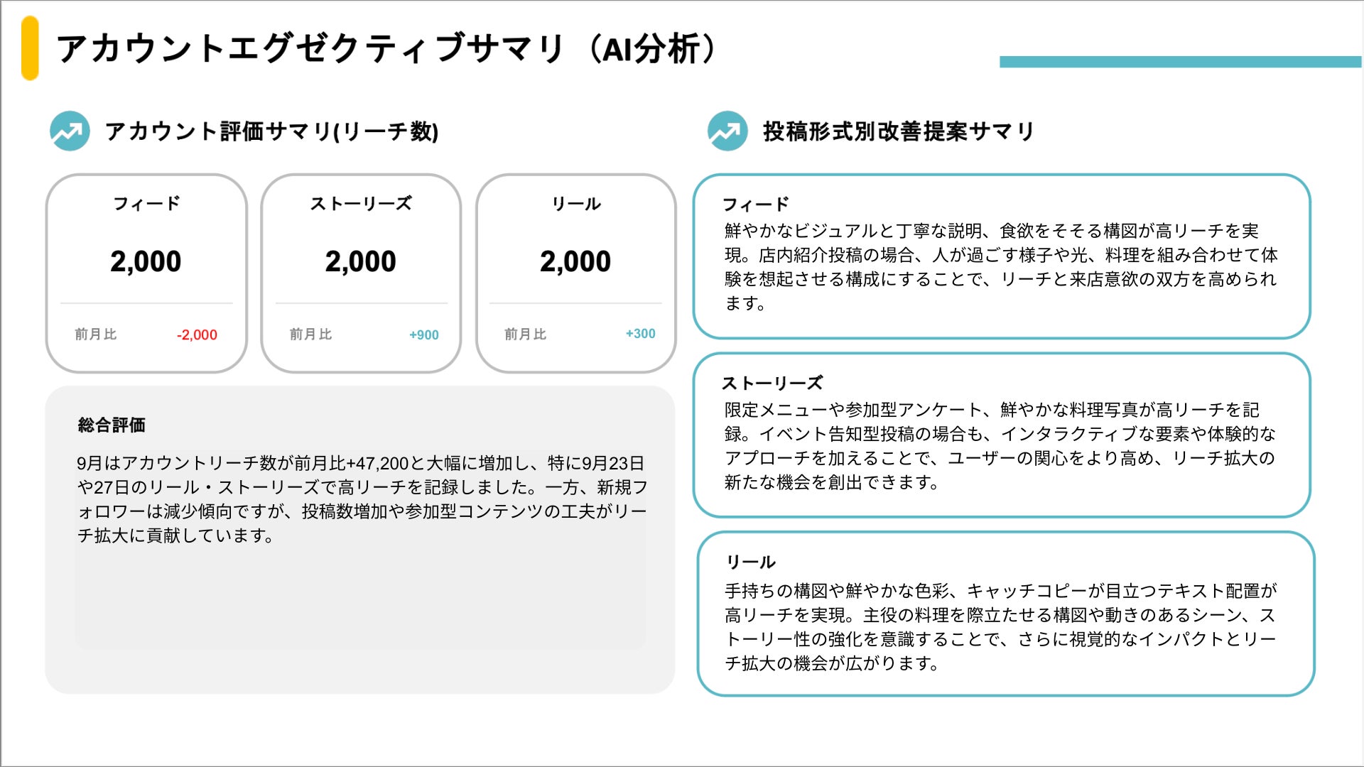 企業やブランドにとって、Instagramを活用したマーケティング活動は不可欠な手段となっています。しかし、その運用においては、投稿ごとの効果検証や傾向分析、改善案の策定といった業務が煩雑化し、担当者の負担となっていました。