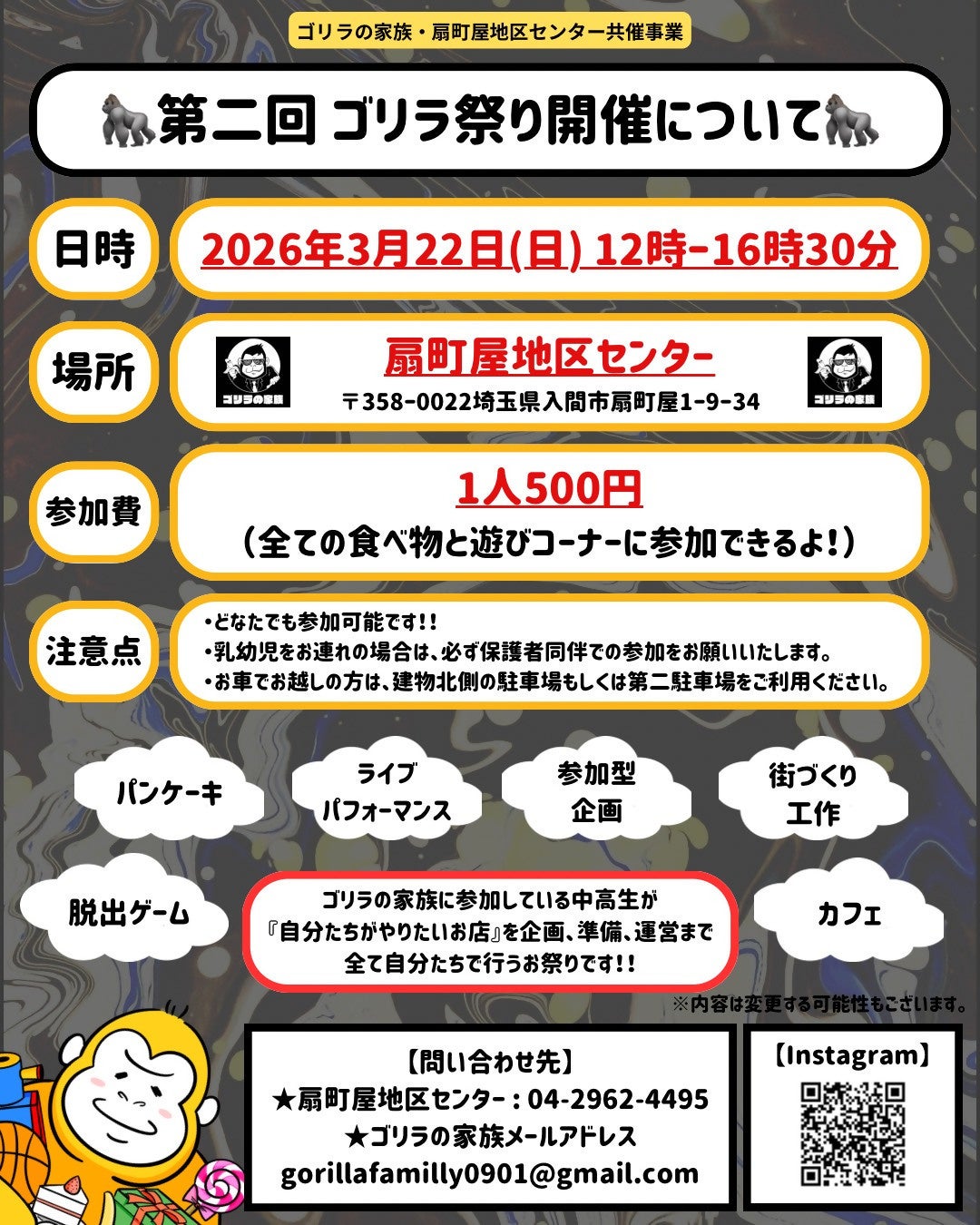 ~市とボランティアが育む居場所『第二回ゴリラ祭り』3/22開催~
