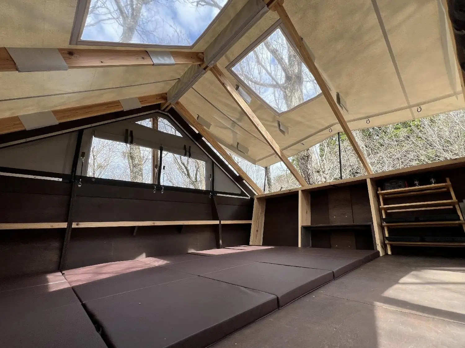 全国20箇所のキャンプ場を運営し、利用者ニーズを熟知する株式会社Recampと、デジタル技術を駆使して、革新的な取組を行う設計集団VUILDが共同開発した「TENT★CABIN」は、テントの「自由」と 建物の「安心」の ちょうど間にあるような心地よさを追求。やさしい印象のしっかりとした木の構造と、大きく開く可動式の屋根からは空間のひろがりや自然とのつながりを強く感じることができます。
