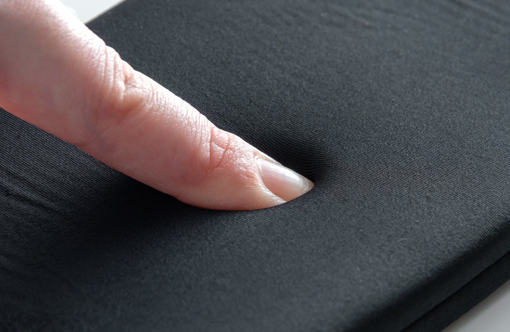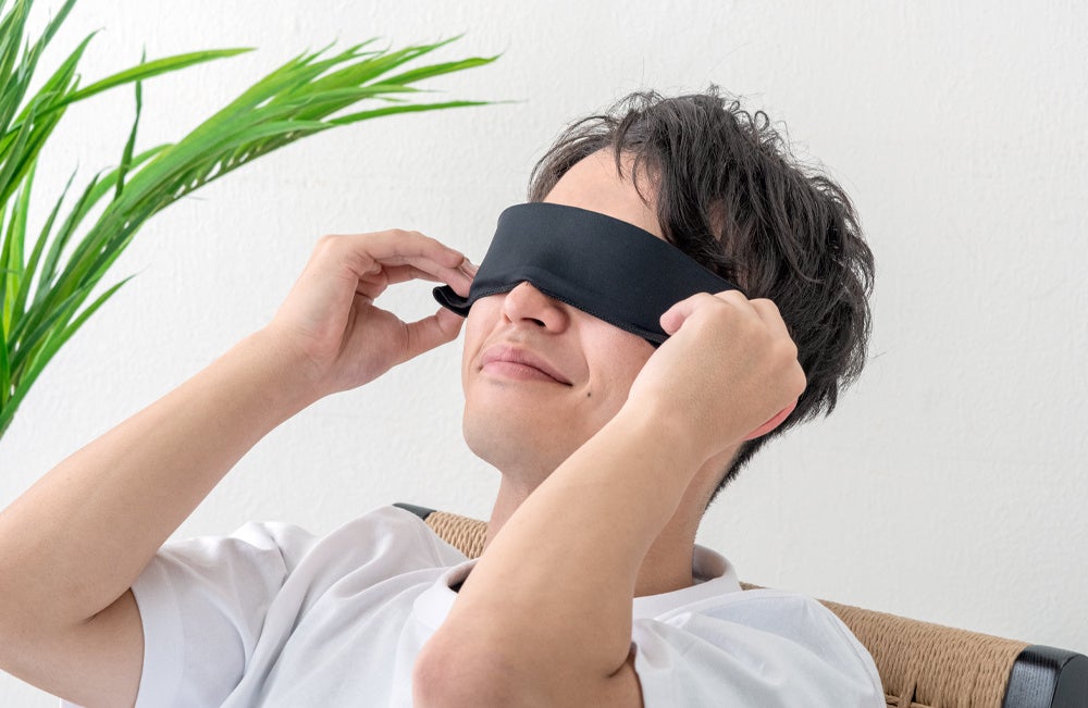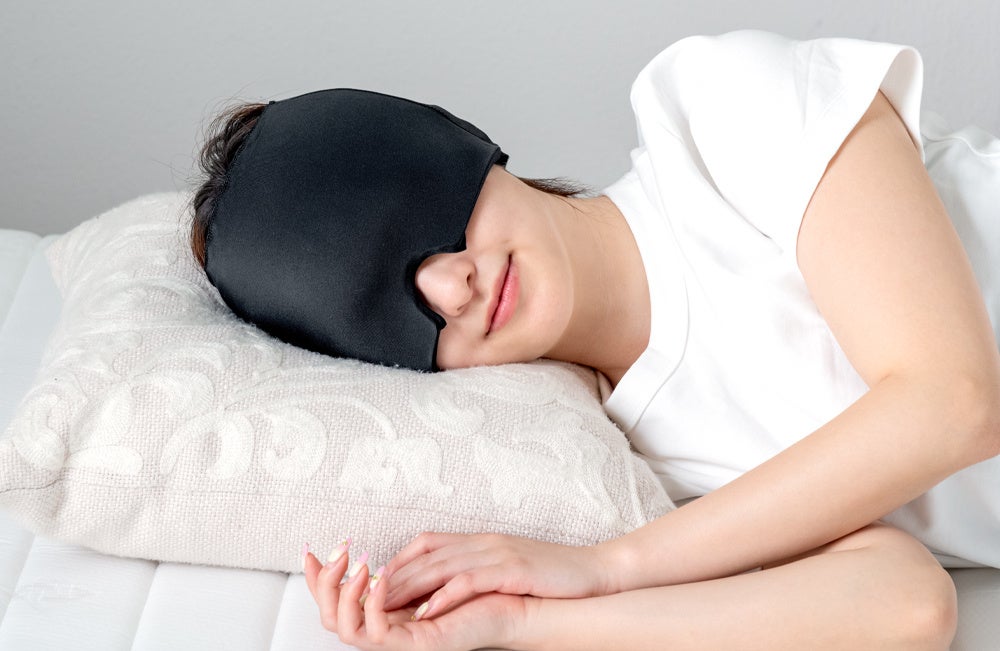 ジェル部分もナイロン部分も伸縮性が高いため簡単に装着することができ、程よい着圧でマッサージを受けているかのようなホールド感を感じられます。鼻部分には切れ込みが入っておりフィット性と遮光性を向上させています。