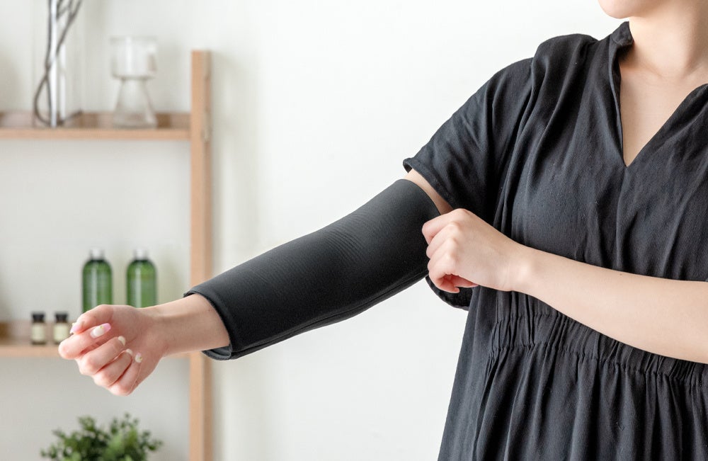 夏のお出かけで日焼けをしてしまった際や、作業をしていて腕が疲れてしまったときに冷やしてリラックスすることが可能です。また、こちらのアームカバーも伸縮性が高いため、付けたままでも動きやすく、家事や在宅ワークの間に着用することもできます。