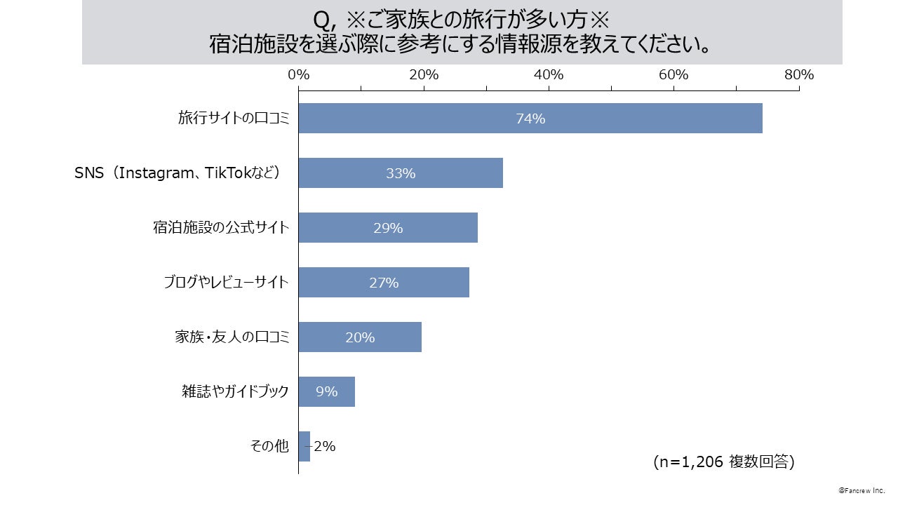 1.宿泊施設を選ぶ際に参考にするのは「旅行サイトの口コミ」74%