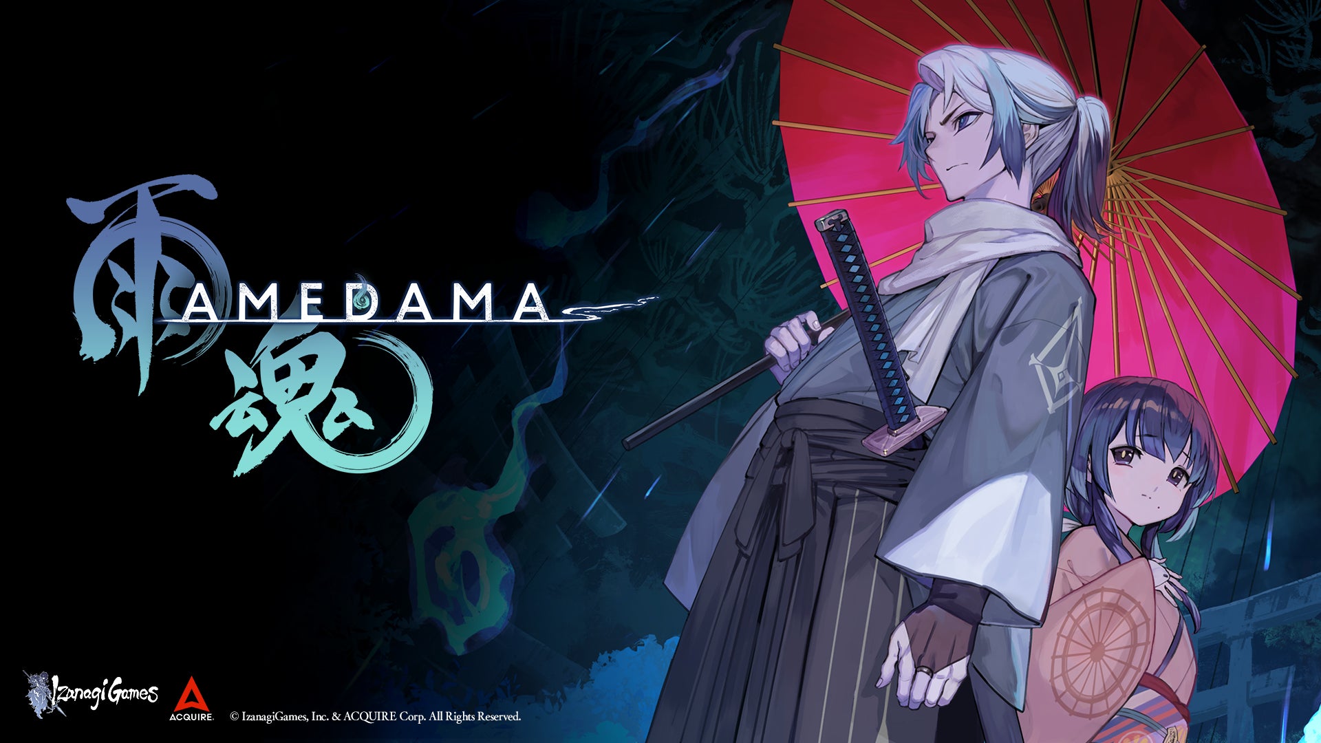 アクワイアとイザナギゲームズがタッグを組んだ新作ゲーム、箱庭型・横スクロール憑依アクションアドベンチャー『雨魂 - AMEDAMA -』。キャラクターデザインはlack(Fate/Grand Order、刀剣乱舞)、音楽は⼩⾒⼭優⼦(モンスターハンターシリーズ)が担当。和とドットが融合した新たな2D表現を採用している。