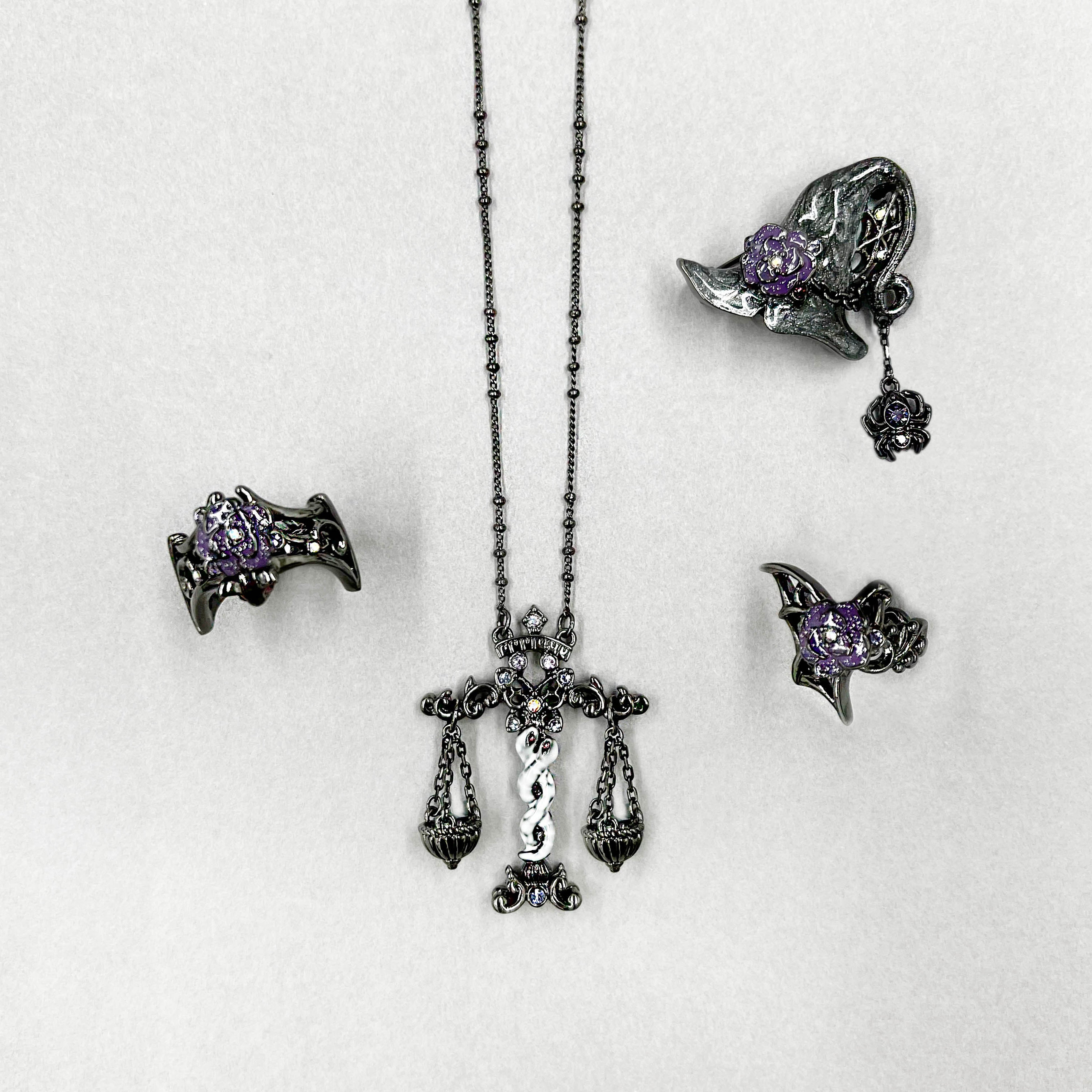 透かしで表現されたコウモリ、叡智のシンボルとさている魔女の帽子、天秤をモチーフにしたアイテムが登場。