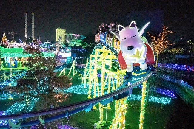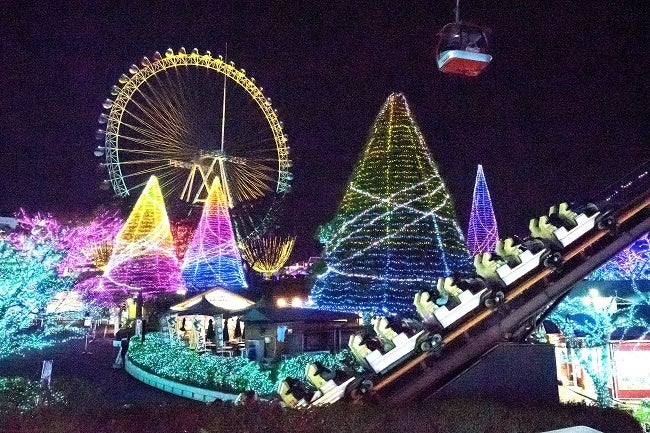 アトラクションに乗りながら眺めるイルミネーションは遊園地ならでは。観覧車やジェットコースターなど