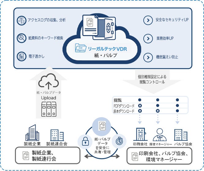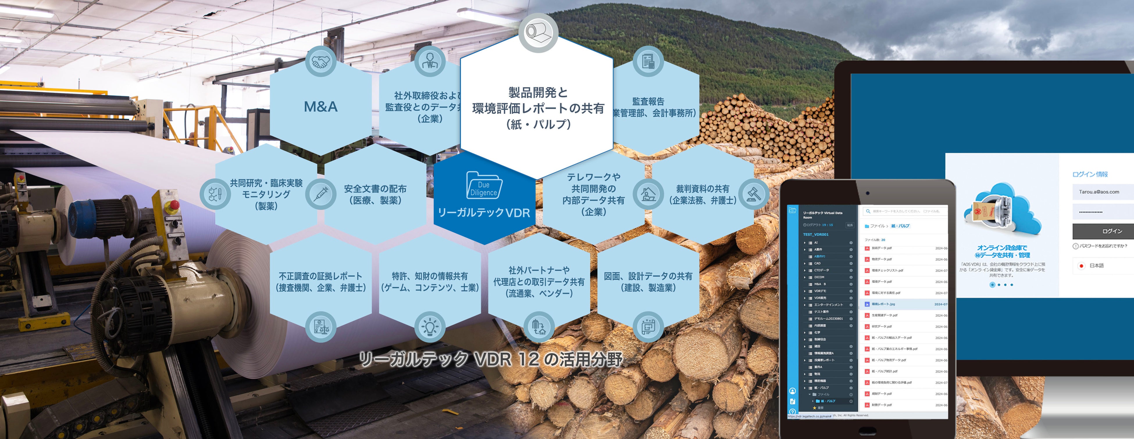 ・リモートワークの支援: 「リーガルテックVDR 紙・パルプ」を活用して、リモートワーク環境でも安全にデータを共有・管理できるようにします。