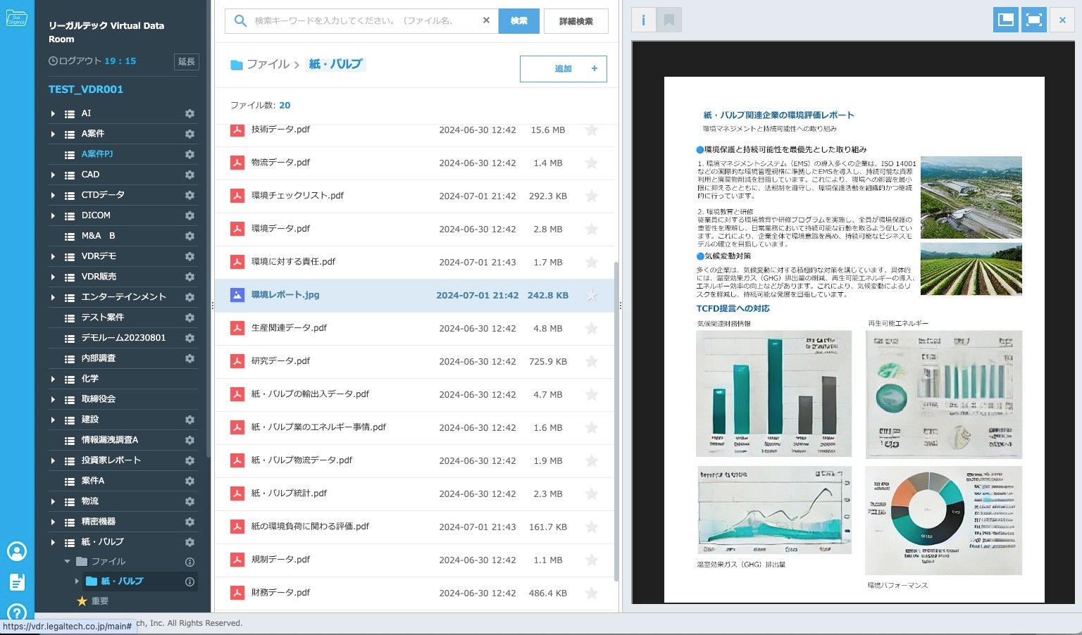 ・コンプライアンス管理: 「リーガルテックVDR 紙・パルプ」を利用して環境規制に関連するドキュメントを安全に管理・共有し、規制遵守を確実にします。