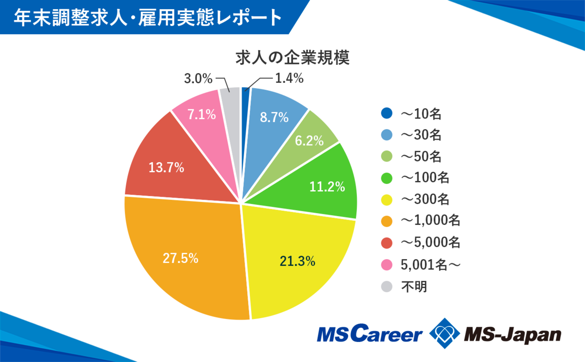 【業務に年末調整が含まれる求人の27.5%が「301~1,000名」規模の企業】