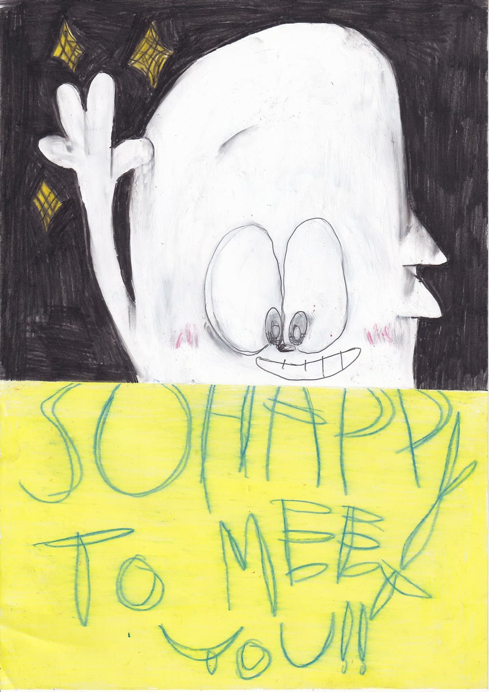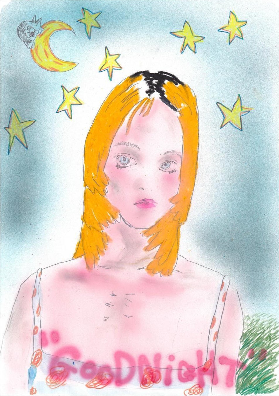 主に色鉛筆やクレヨンを用い、どこか子供らしく、温かさや懐かしさを感じさせる画風が特徴。また、作品に書かれた日本語や英語の言葉はその絵を補足したり、時にはその言葉たちすらも絵の一部となったり、より自由な世界を表現しています。