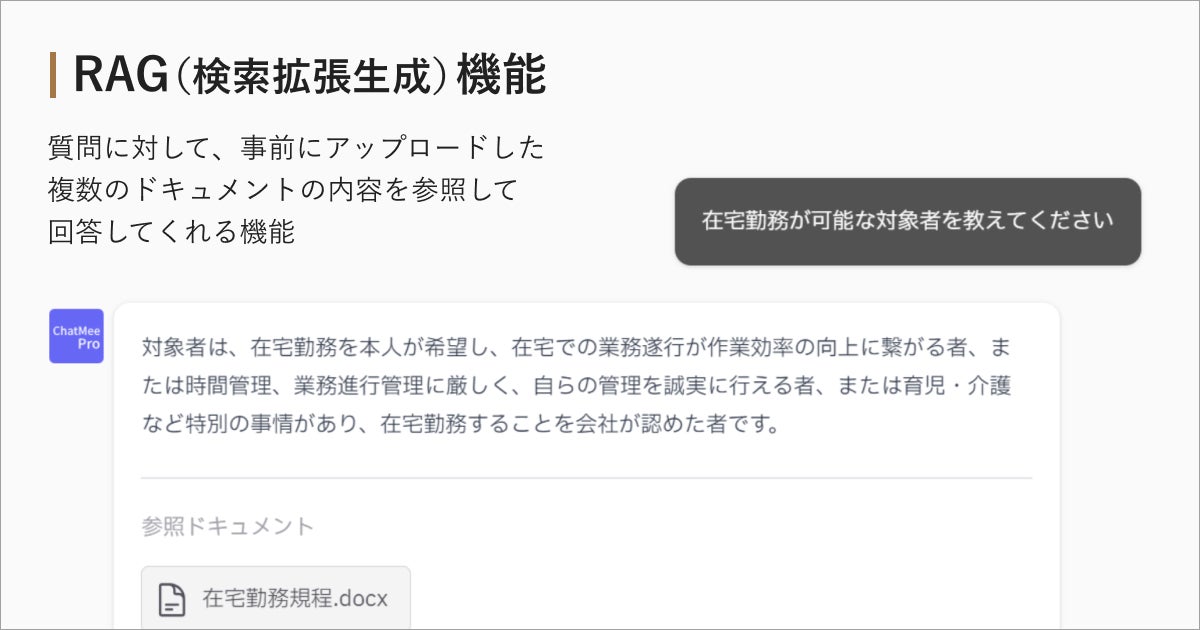 また、アップロードしたドキュメントを組み合わせて回答を抽出できる「RAG(検索拡張生成)機能」においても、回答精度の向上などのアップグレードを予定しています。
