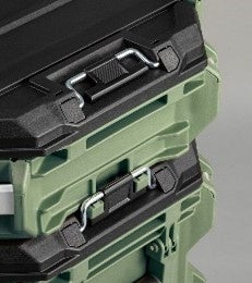 ボックス同士を固定する左右2箇所のスタックラッチを装備し、衝撃によるズレ落ちを防ぎます。