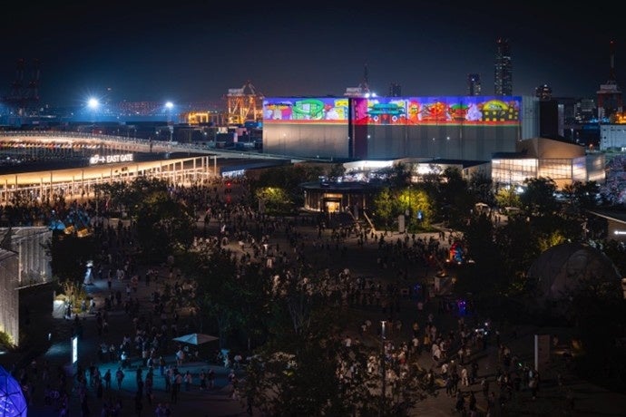 投影場所 :横浜冷凍物流倉庫(ヨコレイ)の壁面(万博会場東側)