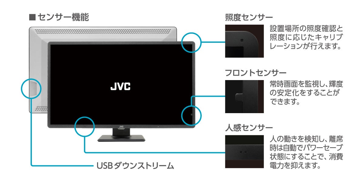 ・フロントセンサー:常時画面を監視し、輝度の安定化をすることができます。