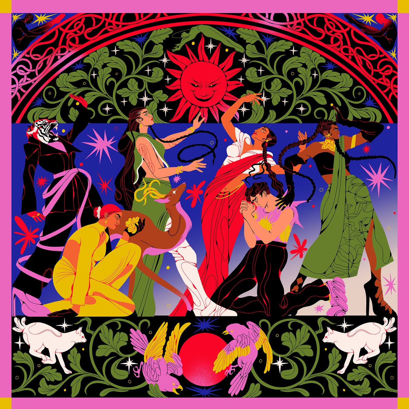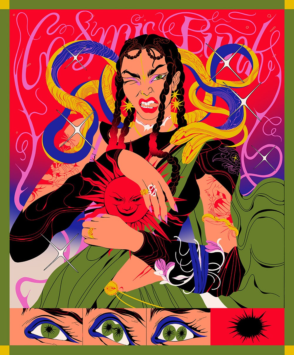 インド・ムンバイで活躍する新進気鋭のアーティストデュオBOOMRANNG(ブームラン)は、Nike、Apple、Google、Coca-Colaなどのグローバルブランドとコラボレーションし、数々の作品を発表しています。インドで古くから語り継がれる神話や、日本・欧米のアニメ/コミックなどの文化に影響を受けた二人が、現代の神話「COSMICPUNK」を創作し、今回東京初個展にてそのアートワークを発表します。未だ語られていない物語への情熱とSFへの愛を融合させた世界観は、マキシマリズムとレトロフューチャリズムに溢れる作品となり、大切な価値観を次世代へ、未来へとつなぐグラフィックアートです。