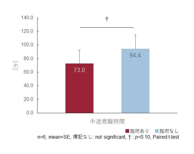 活動量計の結果から、施術を受けた日は受けなかった日よりも、中途覚醒時間*5が減少する傾向が確認されました。