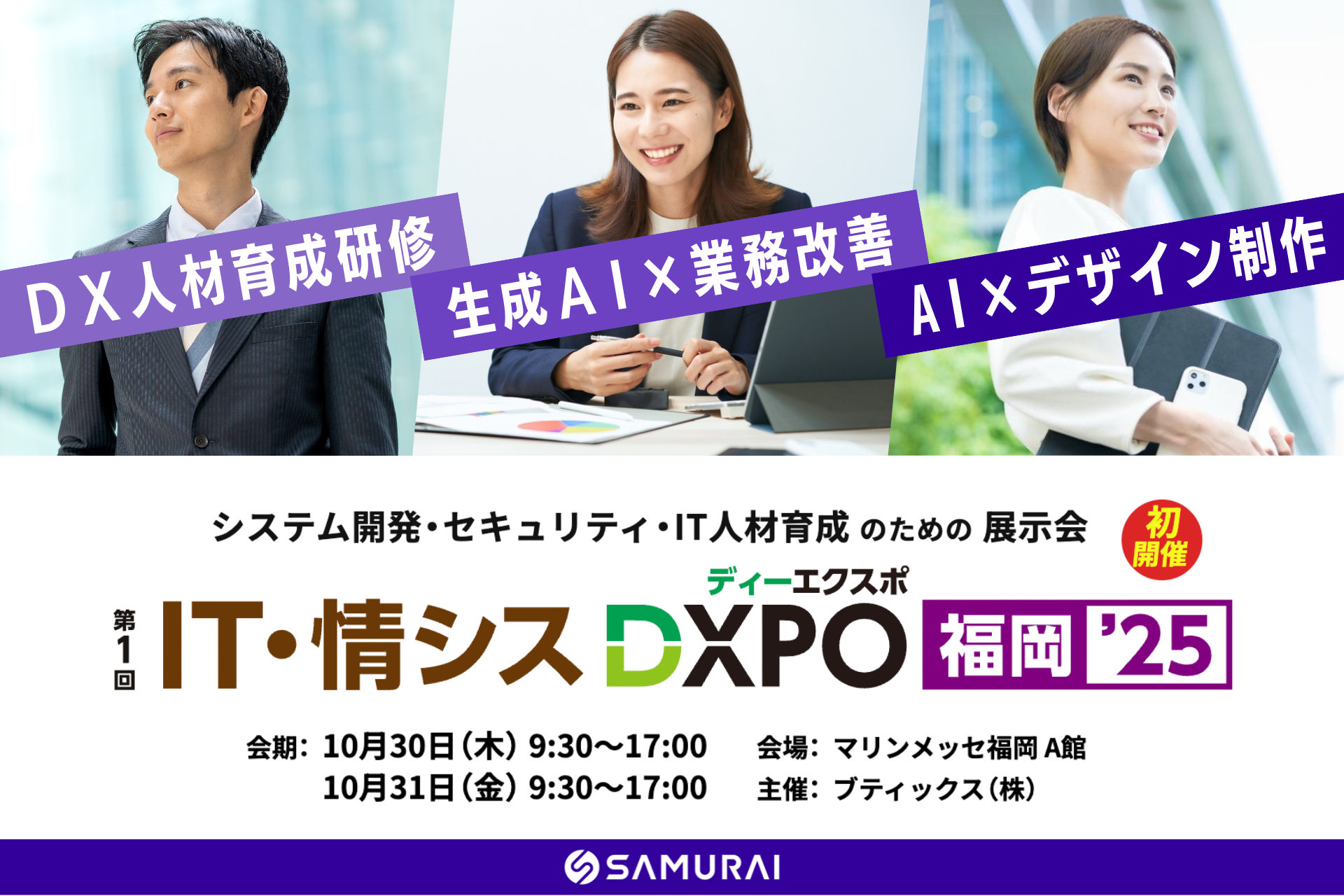 プログラミングスクール『侍エンジニア』を運営する株式会社SAMURAI(本社:東京都港区、代表取締役:羽田 吾立)は、2025年10月30日(木)・31日(金)にマリンメッセ福岡で開催される展示会『IT・情シスDXPO 福岡’25』に出展いたします。
