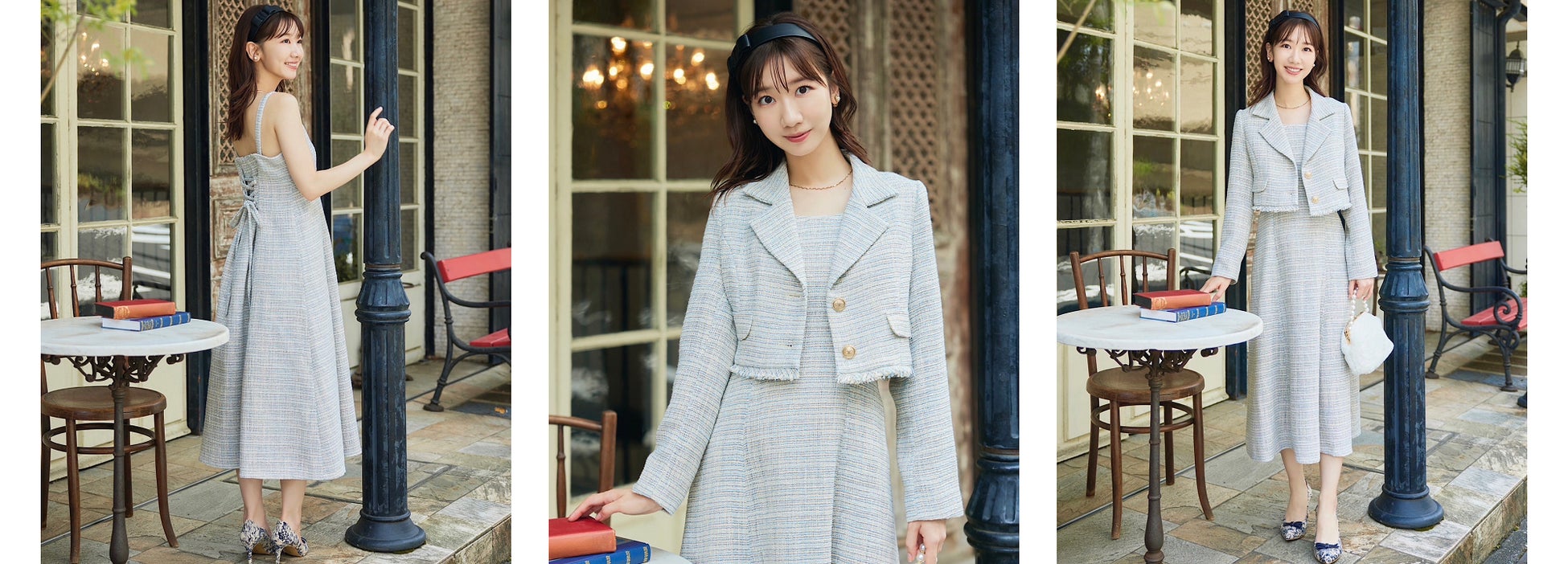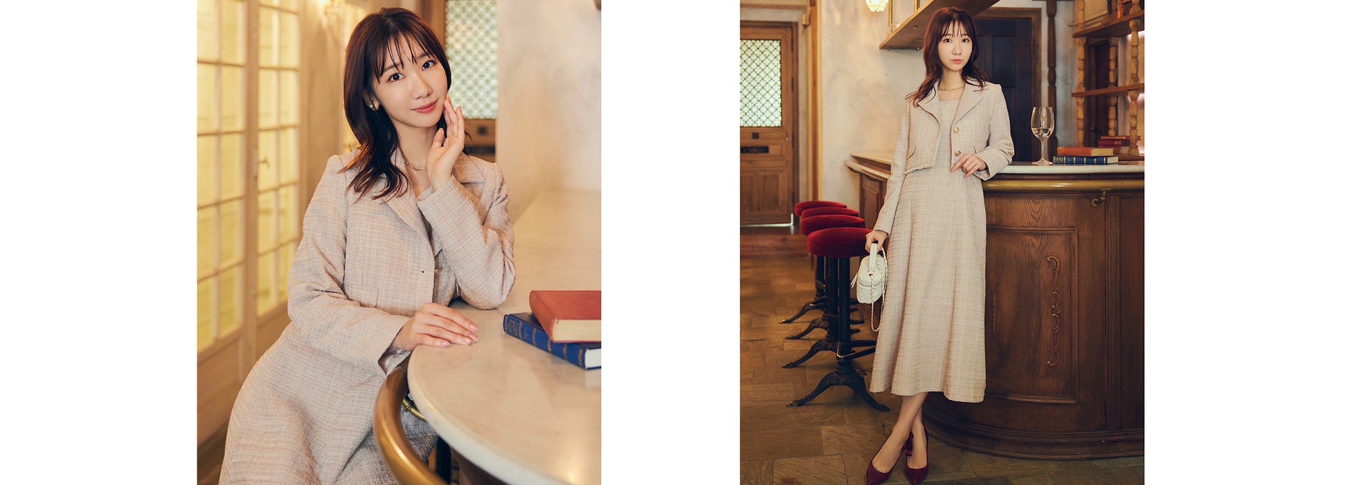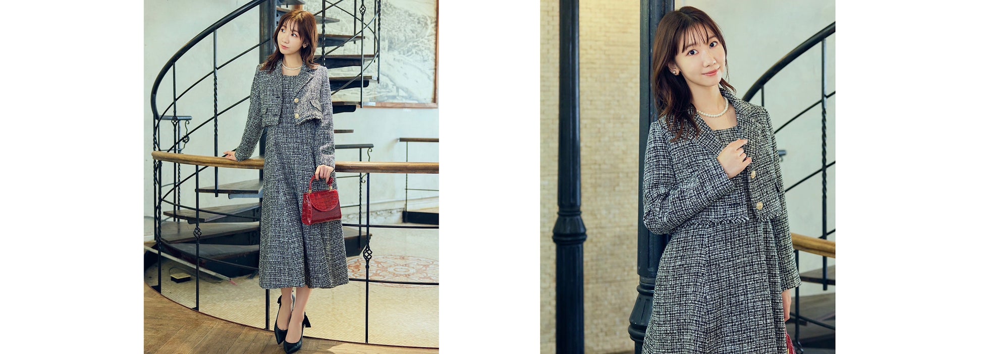 大人気アイドルで歌手の「柏木由紀(AKB48)」さんと待望のコラボレーションアイテム第二弾。今回は秋の主役となるツイードジャケット&ワンピースセットアップ、全3色展開です。