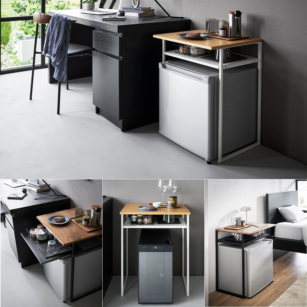 デッドスペースになりがちな小型冷蔵庫(45L用)や小型のワインセラーの上を有効活用できます。