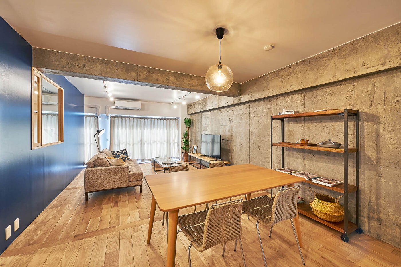 本ショールームは小さいお子さまのいる共働きファミリーを想定し、築43年の中古マンションをフルリノベーションしたショールームです。71.16㎡のファミリー向けに造られた物件で、個人の時間も大切にしながら、家族とのつながりを感じられる居心地のよい空間を実現しました。昨今のニーズとして、家事効率向上を求めるお客さまの増加が見られます。本ショールームでは、共働き夫婦や子育てファミリーはもちろん、シングルにも嬉しい家事の負担を減らす工夫を様々ちりばめました。