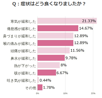 トップに来たのは“寒気が緩和した”という症状。