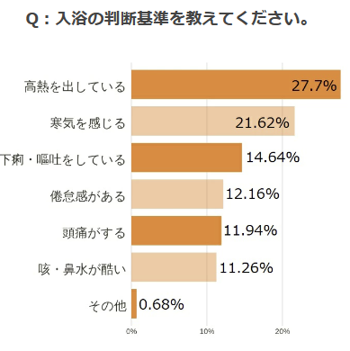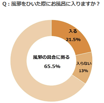 ここまで、みなさんの風邪発症時の入浴に関する考えを見てきましたが、軽度の風邪症状であれば入浴する人が多く、更に入浴により症状が緩和する傾向にあるということがわかりました。