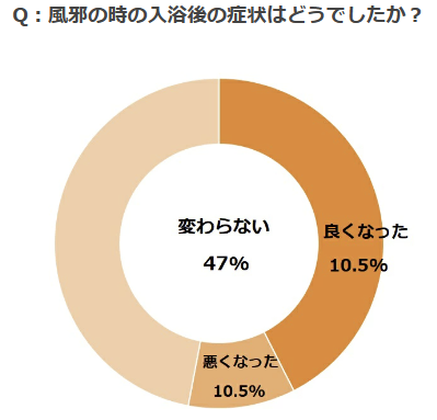 入浴で症状悪化は1割、4割以上は良くなったと回答