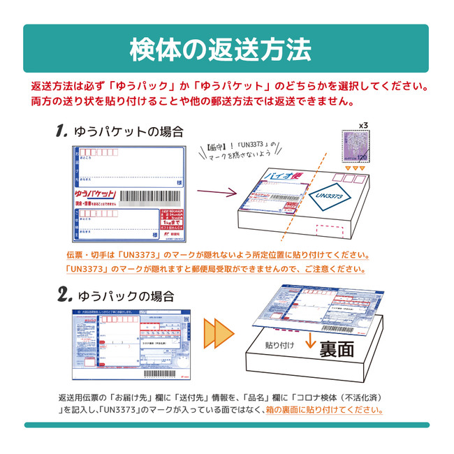 ※検体の返送は必ず「ゆうパケット」または「ゆうパック」のどちらかを選択してください。
