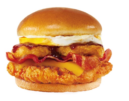 ウェンディーズオリジナルのシンプルな味わいのホームスタイルチキンに、コクのあるバーボンBBQソース、アップルウッドで燻製した香ばしいカリカリのベーコン、サクほく食感が特徴のハッシュポテトを合わせました。食感の違いが楽しめる、秋限定·月見バーガーです。