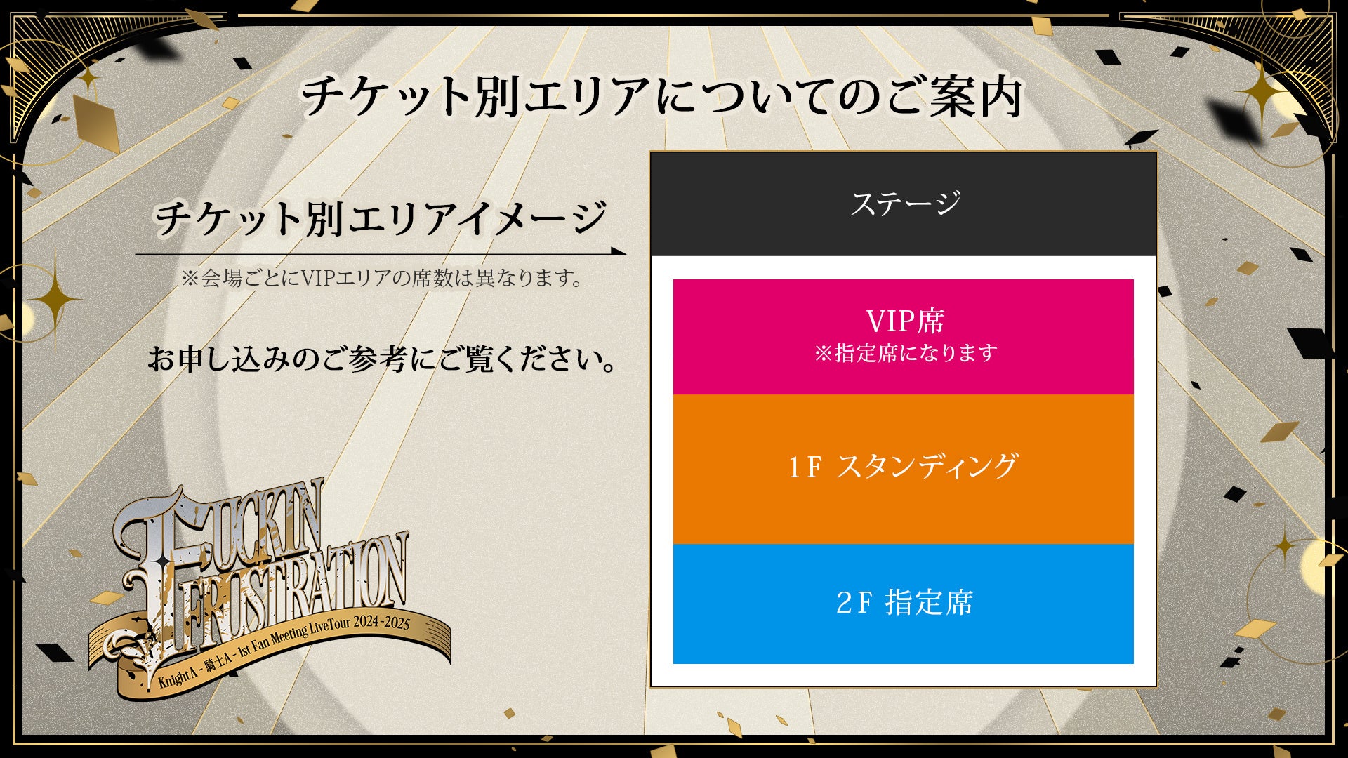 Knight A - 騎士A - 1st Fan Meeting LiveTour 2024-2025「FUCKIN FRUSTRATION」のエリアイメージは以下となっております。お申し込みのご参考にご覧ください。
